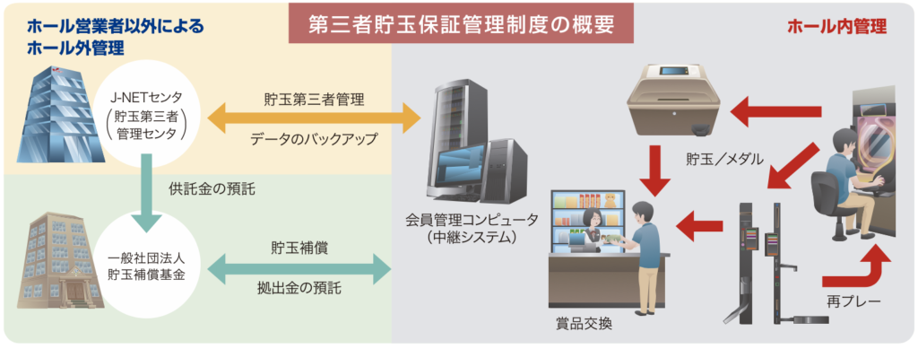 貯玉補償基金で利用者の保護措置を図り、貯玉第三者管理で適正な運用を担保することを併せて第三者貯玉保証管理制度といいます。